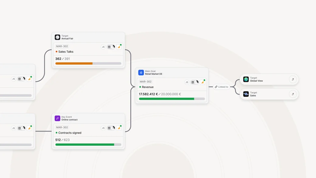Goals don't exist in isolation. You can now link TargetLenses directly to each other to visualize their strategic relationships and dependecies. A goal in one TargetLens™ can be a tangible contribution in another. You always know how your goals relate to each other – and move between them without losing context.